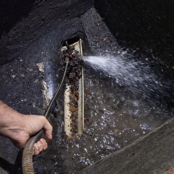 Limpeza técnica de tubulações entupidas, restabelecendo o fluxo correto da rede de esgoto.